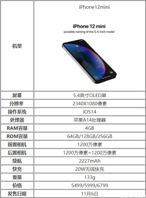 iPhone12mini配置參數(shù)表
