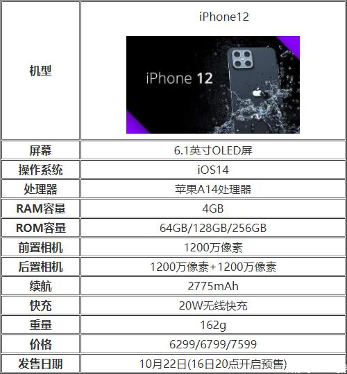 iPhone12配置參數(shù)表