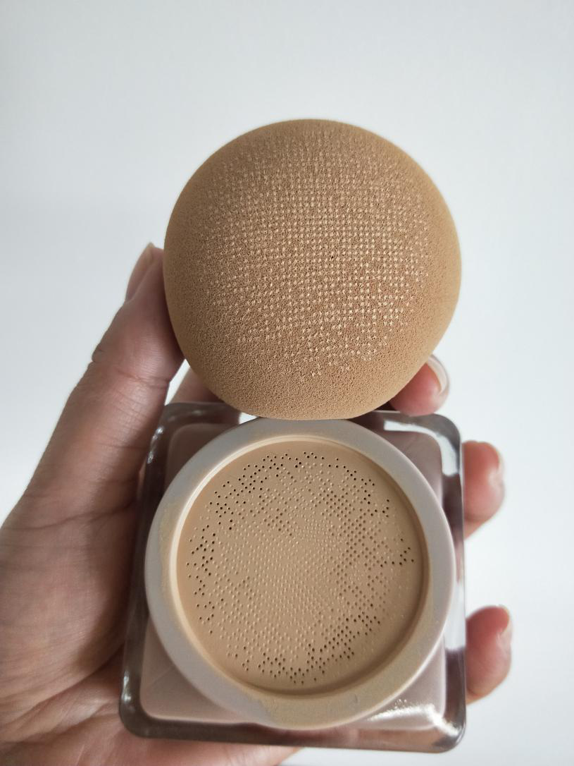它的設(shè)計比較符合韓國化妝師倡導(dǎo)“少量多次”的底妝大法,987個小孔而且非常適合我偷懶,因為它出粉就像987個小手點涂在美妝蛋上,而且這個膜可以控制出粉量剛好,所謂少量多次就是我多懟幾次就可以了。(記得最開始看到這個產(chǎn)品的名字,很好奇啥是900目,還專門去搜索了一下,簡單來說,就是它的膜上面均勻分布 987個孔哈哈~)