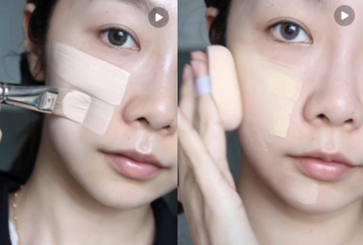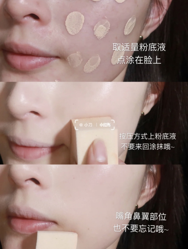 化妝師們要么第一種方式是刷子先薄薄的刷一層(如圖,小紅書隨便找的),然后美妝蛋拍勻拍開,如果有需要可以重復(fù)再來一遍,不要嫌棄麻煩,如果你們看過韓國女團化妝師的視頻,你們會發(fā)現(xiàn)人家重復(fù)了n多次!只要你粉量控制得好,這個方法真的很像磨皮拋光!但是顯而易見就是很浪費時間,建議大型約會之前使用!