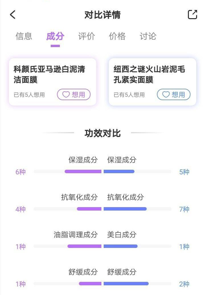 咱們就以科顏氏白泥和紐西之謎泥膜的成分對(duì)比來(lái)說(shuō):