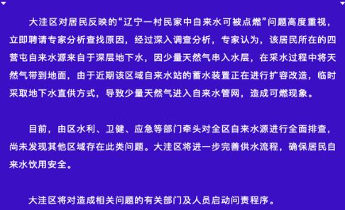 那么這家自來(lái)水為什么能被點(diǎn)燃呢?盤(pán)錦市大洼區(qū)委宣傳部,通報(bào)了調(diào)查結(jié)果